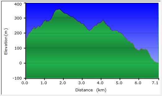 Klicken Sie auf das Bild, um es zu vergrößern (s. türkisfarbige Route). Damit können Sie auch die Höhengrafik dieser Route sehen.