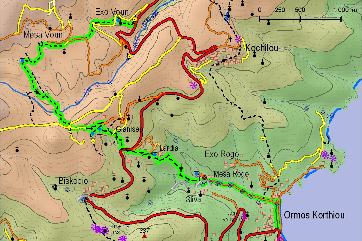 Vrachnou-Exo Vouni-Mesa Vouni-Gianniseo-Lardia-Hafen Korthí