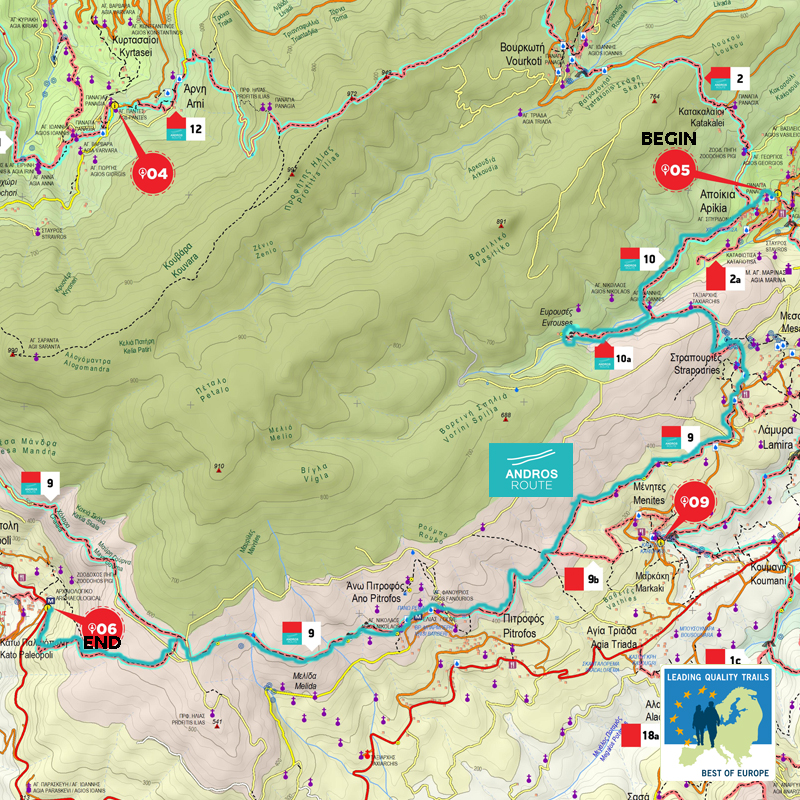 - Ein anspruchsvoller und wunderschöner Abstecher geht am Fluss entlang durch das bewaldete Tal nach Ano Evrouses und zurück. (Route 10a)