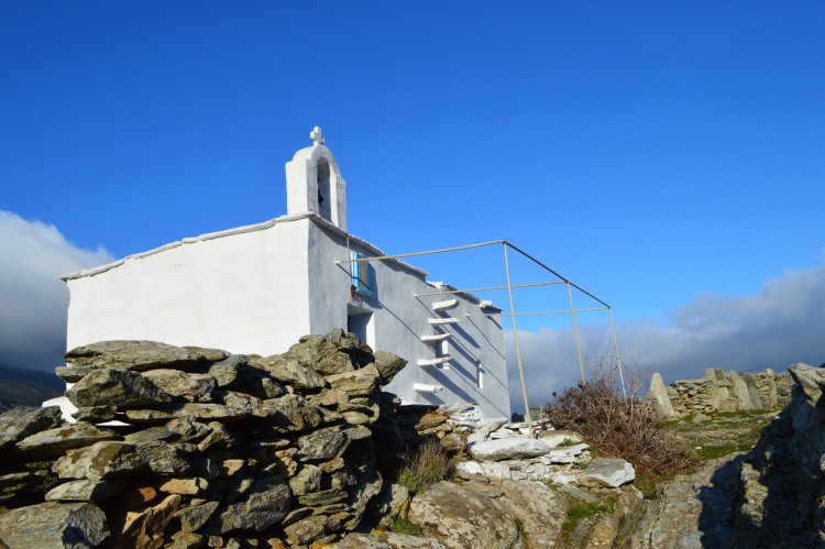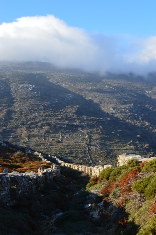 - Der Bergkamm kurz vor Strapouries ist zeitweise starkem Nordwind ausgesetzt. Achtung bitte.