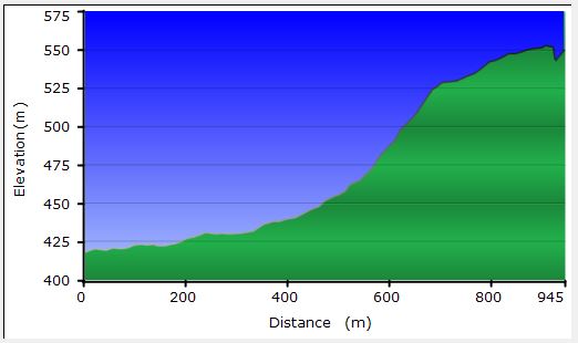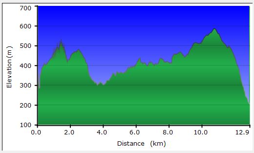 Klicken Sie auf das Bild, um es zu vergrößern (s. türkisfarbige Route). Damit können Sie auch die Höhengrafik dieser Route sehen.