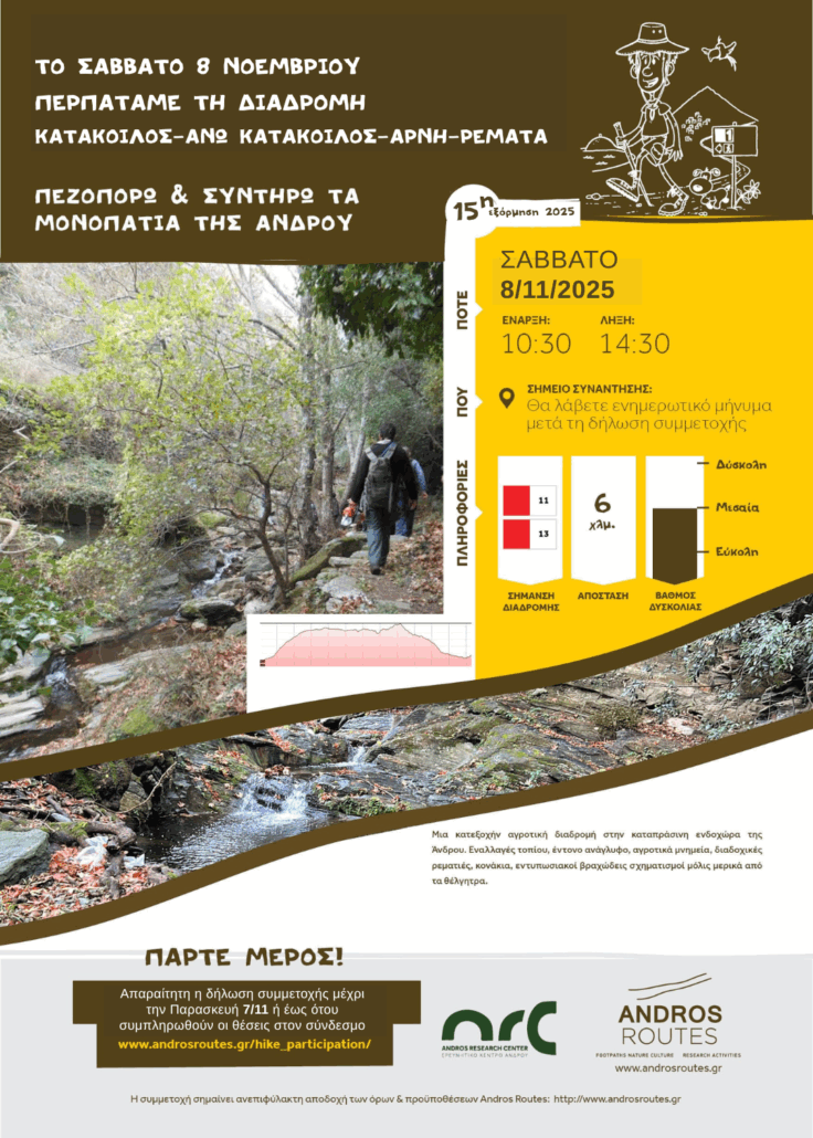 Η συμμετοχή σημαίνει ανεπιφύλακτη αποδοχή των όρων & προϋποθέσεων Andros Routes https://www.androsroutes.gr/el/hike_advice_roules/