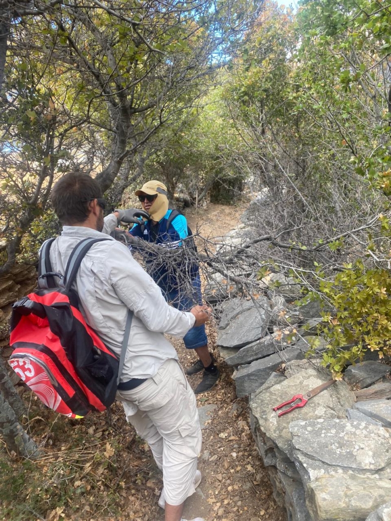 The path was in very good condition. Where needed, we pruned vegetation, collected several bags of litter, put fallen stones on dry-stone walls, and replaced worn-out signs.