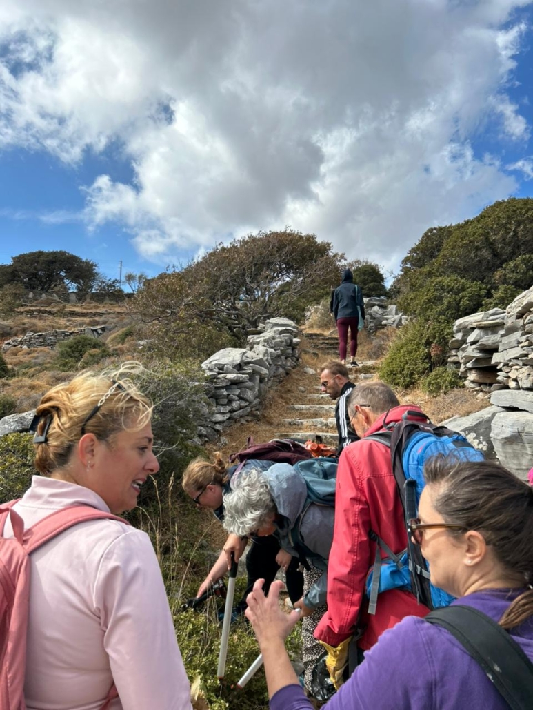 Because the route lacks a “Route Angel” (volunteer caretaker), we were welcomed by the area’s coordinator, Katerina Pantazi, and Route Angel Valentini Deskoulidou. The weather wasn’t ideal for hiking — it was quite windy — but that didn’t dampen the excitement and anticipation of the hikers, young and old.