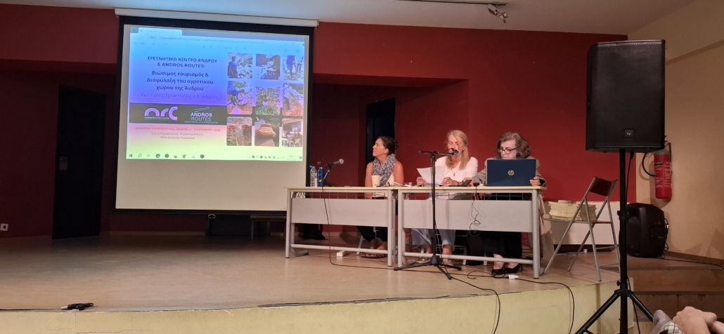 As part of our presentation titled “Andros Research Center and Andros Routes: Sustainable Tourism for the Preservation of Andros’ Rural Landscape – Experiences, Challenges and Opportunities,” Olga Karagianni outlined the historical evolution of our organization’s work, highlighting in particular the Andros Routes initiative, which this year celebrates 15 years of activity, as well as complementary actions related to the preservation of rural heritage and the support of the primary sector, which our organization has been implementing from the pandemic period up to today.